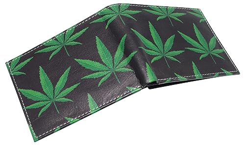 MARSHAL Printed Marijuana Leaf RFID Blocking Genuine Leather Bifold Wallet with Gift box 1