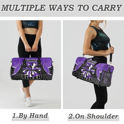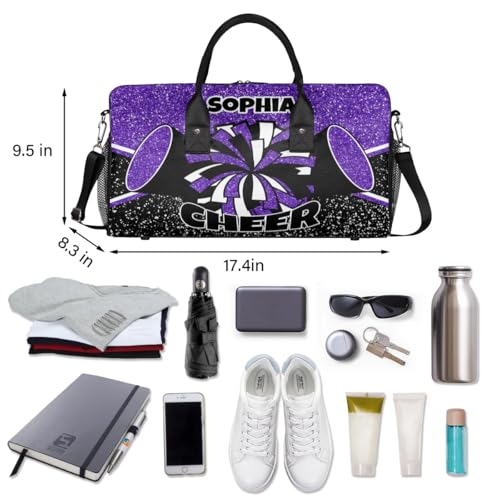 HOT ! Personalized Cheer Bag for Cheerleaders Custom Sport Duffel Bag Gym Bag Travel Duffle Bag Overnight Weekender Bag with Name, Glitter Purple