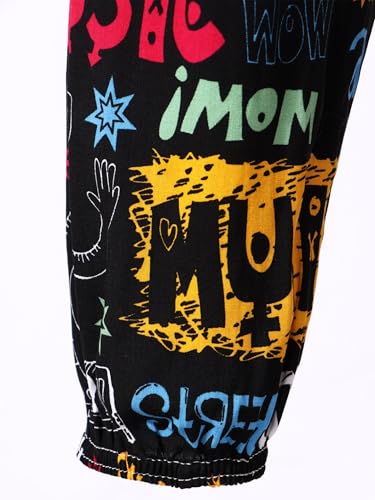 • Pants features with elastic waistband and pants opening casual trousers, cute cartoon pattern print