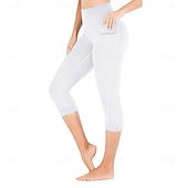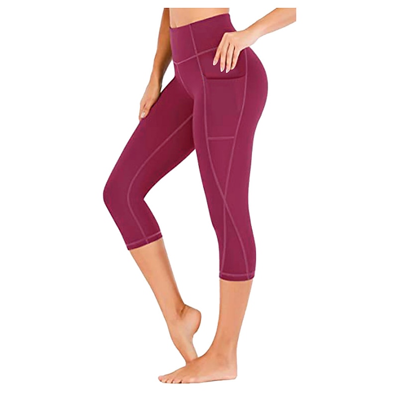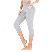 More information about Women's Capri Leggings Side Pockets Butt Lift Tummy Control High Waist Gym Workout Running Fitness Bottoms Black White Burgundy Spandex Sports Activewear High Elasticity Skinny
