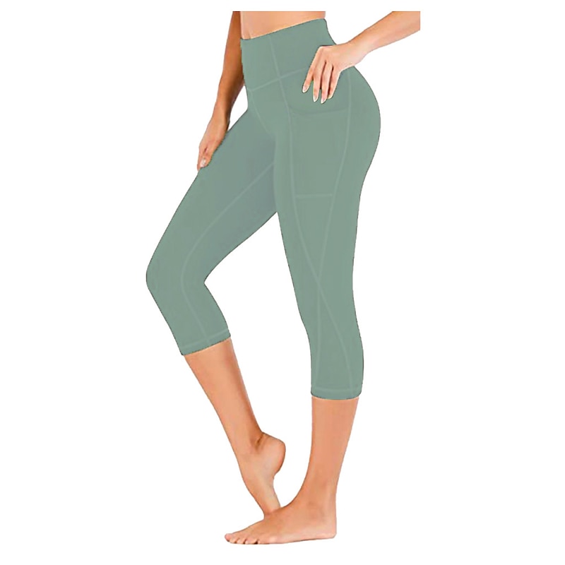 HOT ! Women's Capri Leggings Side Pockets Butt Lift Tummy Control High Waist Gym Workout Running Fitness Bottoms Black White Burgundy Spandex Sports Activewear High Elasticity Skinny