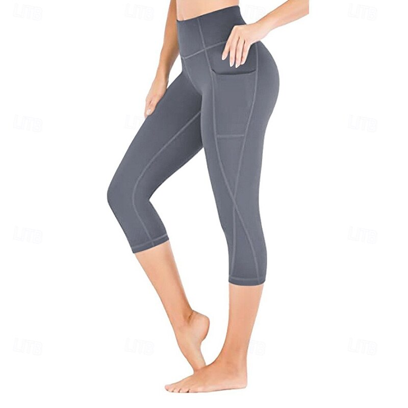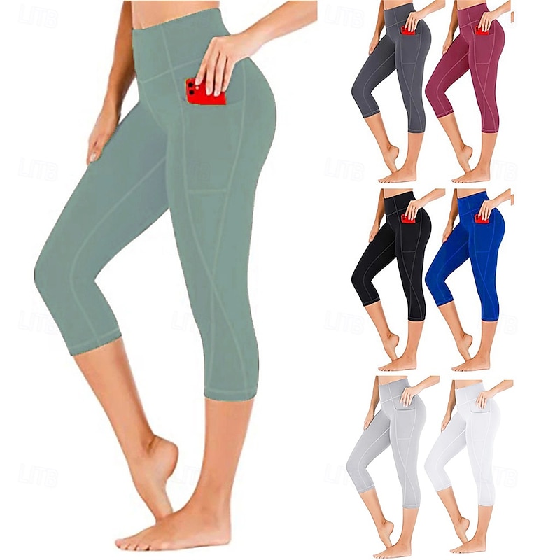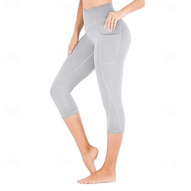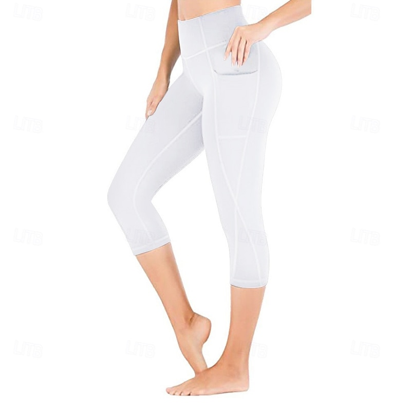 Women's Capri Leggings Side Pockets Butt Lift Tummy Control High Waist Gym Workout Running Fitness Bottoms Black White Burgundy Spandex Sports Activewear High Elasticity Skinny 22