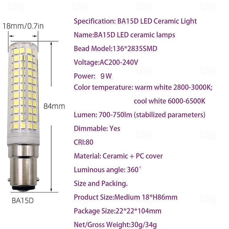 $11.99 - 2Pcs LED Bulbs BA15D/B15/B15D 6W 100W Equivalent to a Halogen Bulb JCD Type T3/T4 B15 Double Connection 220V 2025. Shop for cheap LED Corn Lights online? Buy at lightinthebox.com on sale today!