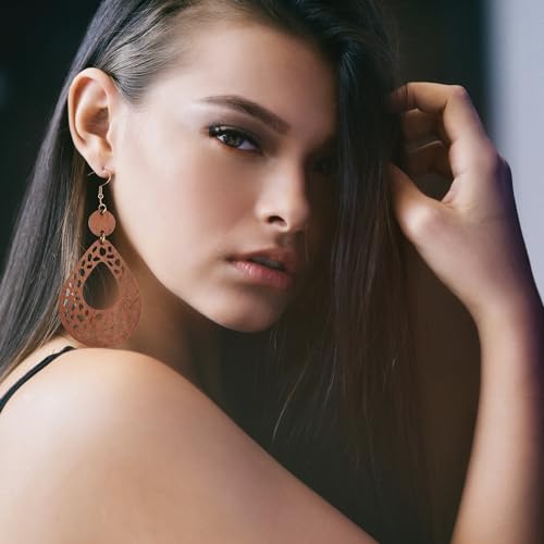 • [High Quality] The vintage earrings are made of environmentally friendly materials, high quality alloy and PU leather, lightweight and durable. Whether you're dressing up for a night out or friend’s party , these dangling earrings for women will make you more charming and personalized.