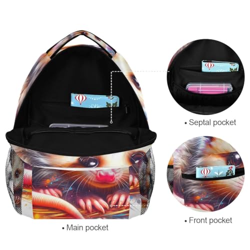 Kids' Backpack, Lightweight Travel Back Pack for Boys Girls Back to School Supplies, 15L, Cute Opossum Anima 6