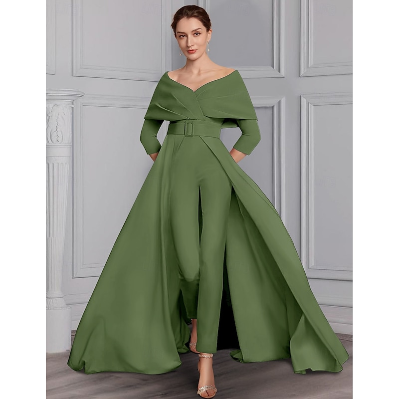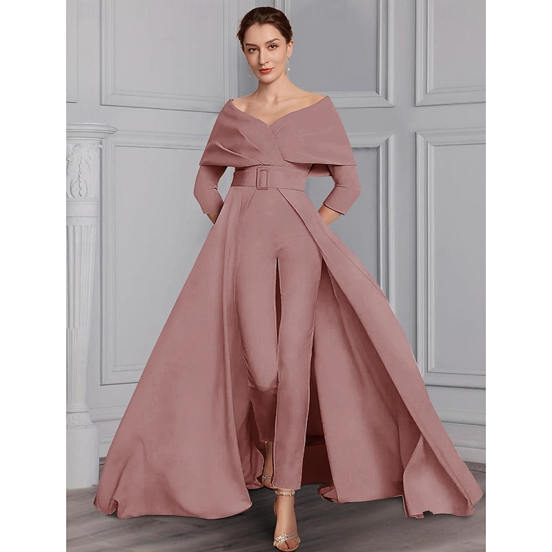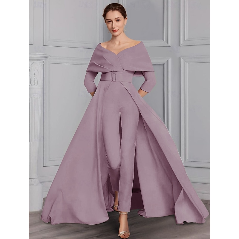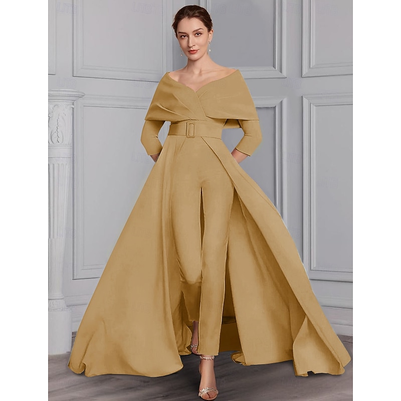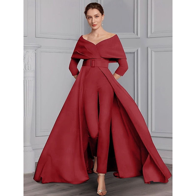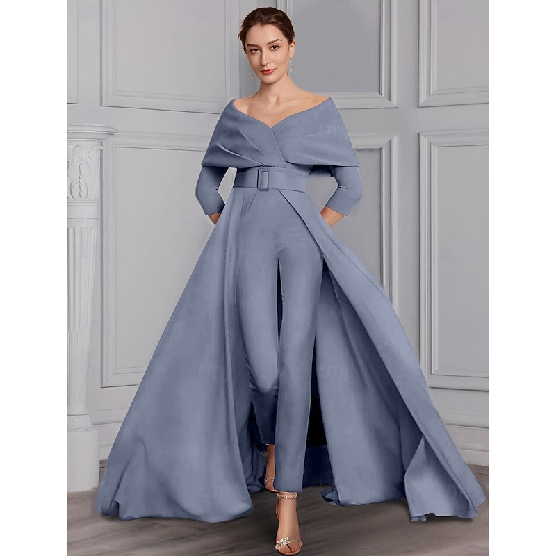 More information about Jumpsuit Mother of the Bride Formal Wedding Guest Elegant Party Scoop Neck Off Shoulder Ankle Length Stretch Fabric 3/4 Length Sleeve with Sash / Ribbon