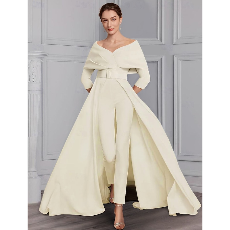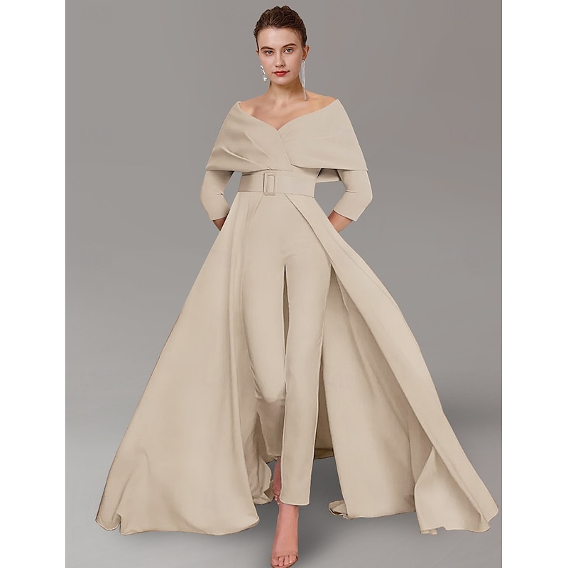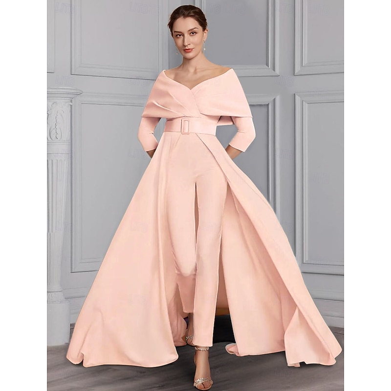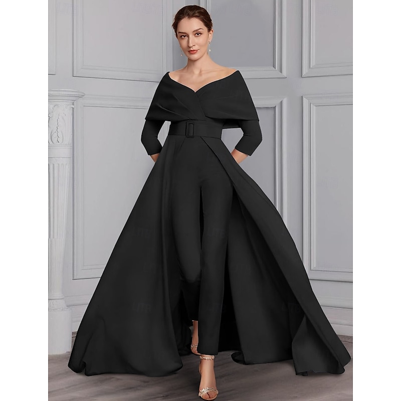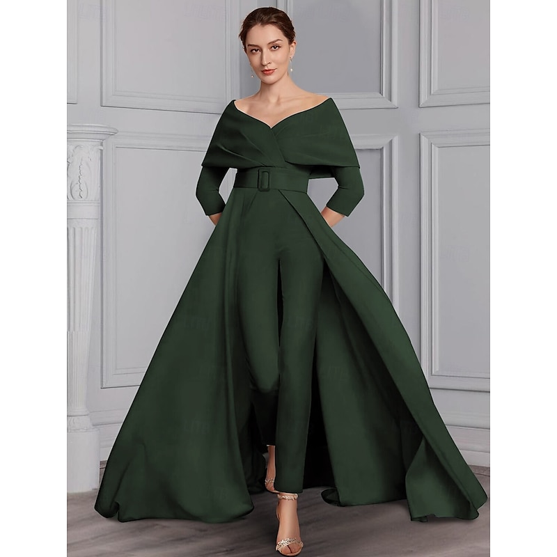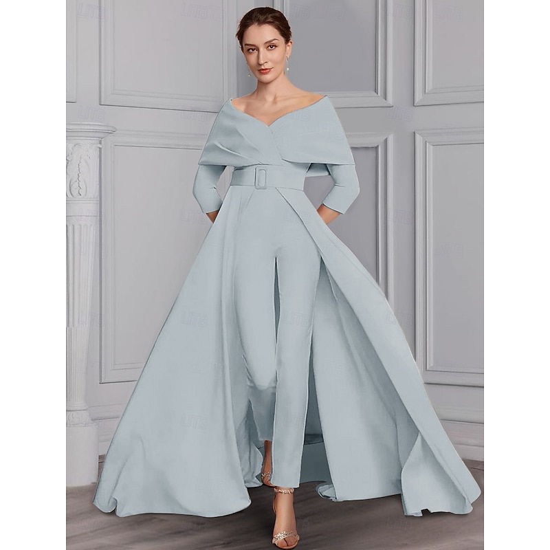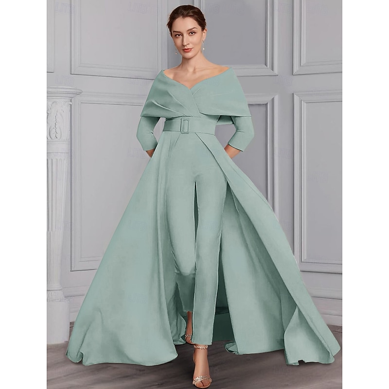 More information about Jumpsuit Mother of the Bride Formal Wedding Guest Elegant Party Scoop Neck Off Shoulder Ankle Length Stretch Fabric 3/4 Length Sleeve with Sash / Ribbon