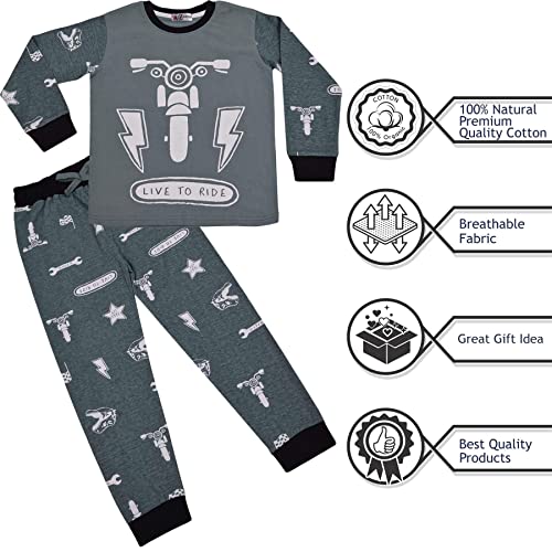 Kids Girls Boys Live to Ride Childrens Pyjamas 2 Piece Cotton PJs Set Nightwear 6