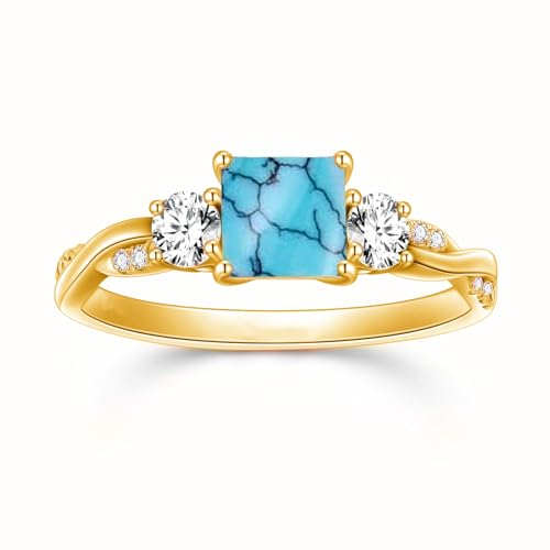 HOT ! Blocaci Princess Cut Turquoise Rings for Women 1CT Center Turquoise Engagement Ring with Moissanite 925 Sterling Silver 10K 14K 18K Gold Wedding Anniversary Rings for Her