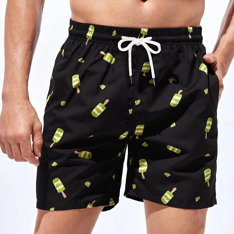 HOT ! Men's 3D Print Ice Cream Surfboard Swim Trunks Swim Shorts Board Shorts Mid Waist Streetwear Hawaiian Boho Casual Daily Holiday Drawstring with Mesh lining Elastic Waist Designer Clothing Apparel