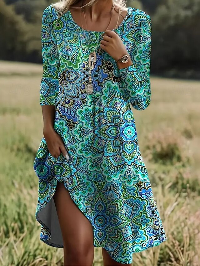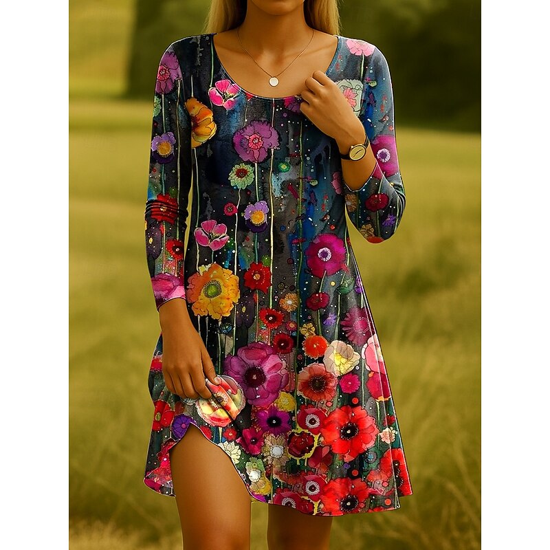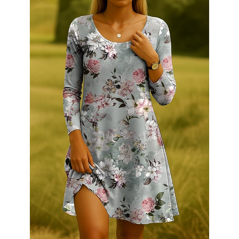 More information about Women's Midi Dress T Shirt Dress Tee Dress Sundress A Line Dress Casual Daily Holiday Date Regular Fit Floral Graphic Long Sleeve Crew Neck Black White Blue Dark Green Summer Spring Fall Winter