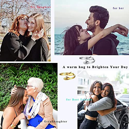 RINHOO FRIENDSHIP Hug Rings for Women Silver Hugging Hands Ring Adjustable 14K Gold Plated Daughter Rings from Mom Jewelry for Couples 4