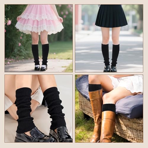 Black Leg Warmers for Women, 15.7 in Knitted Leg Warmer Socks, Fashion Legs Sock for Autumn, Winter, Dance, Sports, 80s Outfit 4