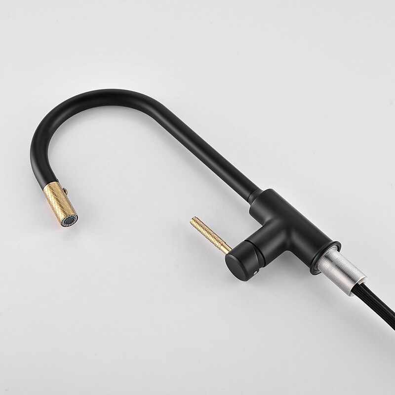Kitchen Sink Mixer Faucet Pull Out, Single Lever Handle Brushed Solid Brass Taps Cold Hot Hose, One Hole with Pull Down Sprayer Black Gold Faucets 7