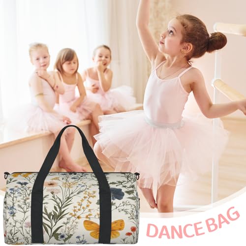 Floral Butterfly Pattern Sports Duffle Bag for Women Men Waterproof Overnight Weekender Bag with Adjustable Strap Travel Tote Bags for Beach Yoga Work Dance Swim 4