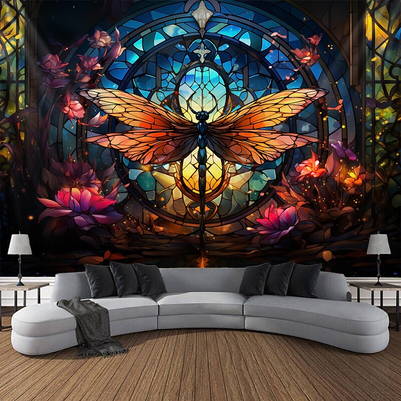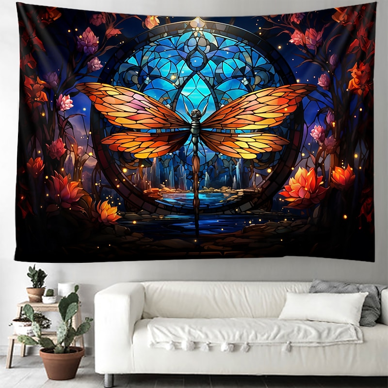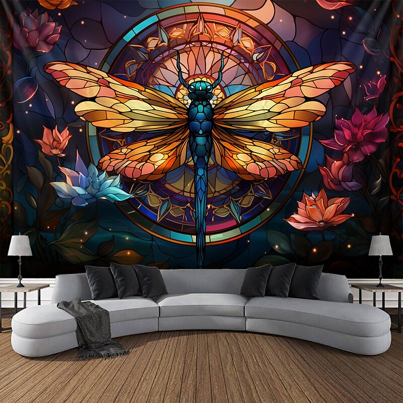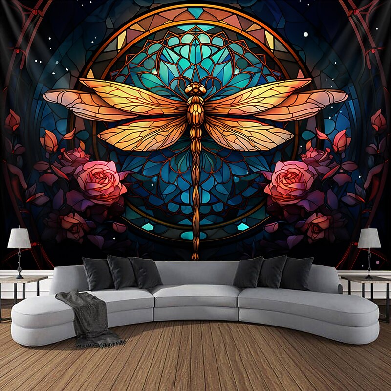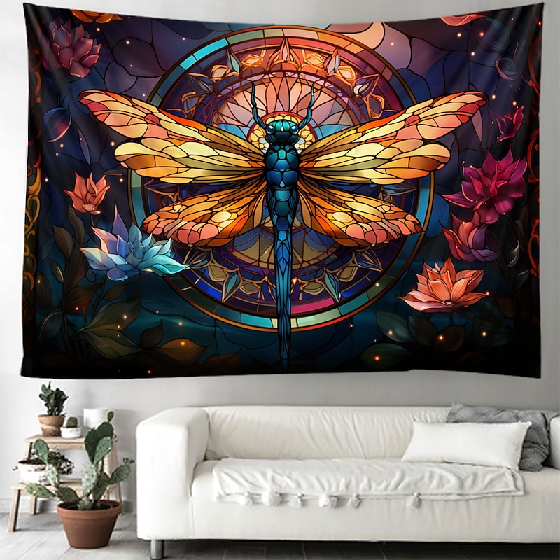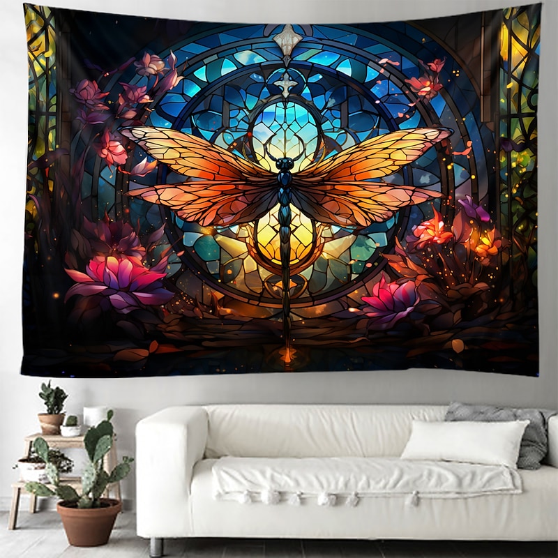 HOT ! Stained Glass Dragonfly Hanging Tapestry Wall Art Large Tapestry Mural Decor Photograph Backdrop Blanket Curtain Home Bedroom Living Room Decoration