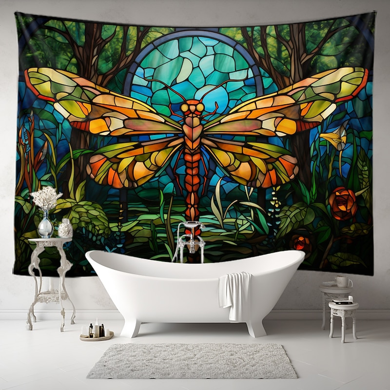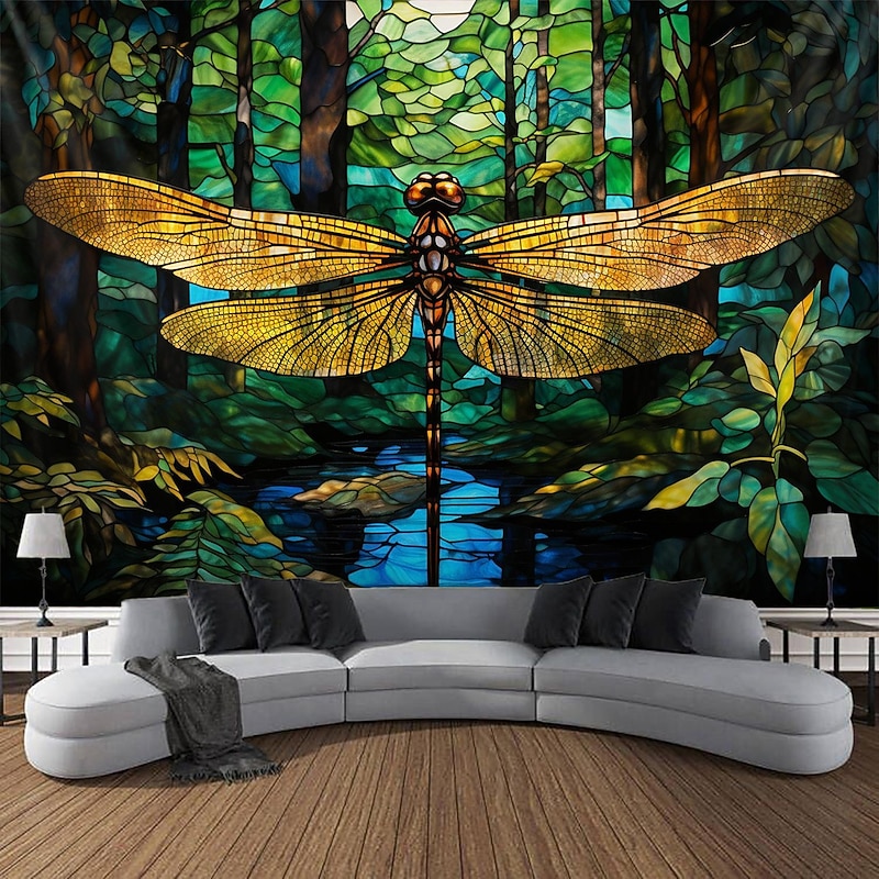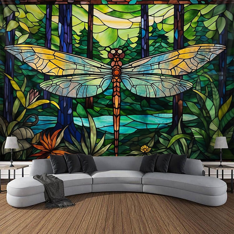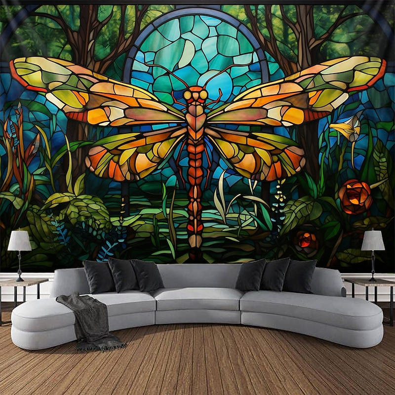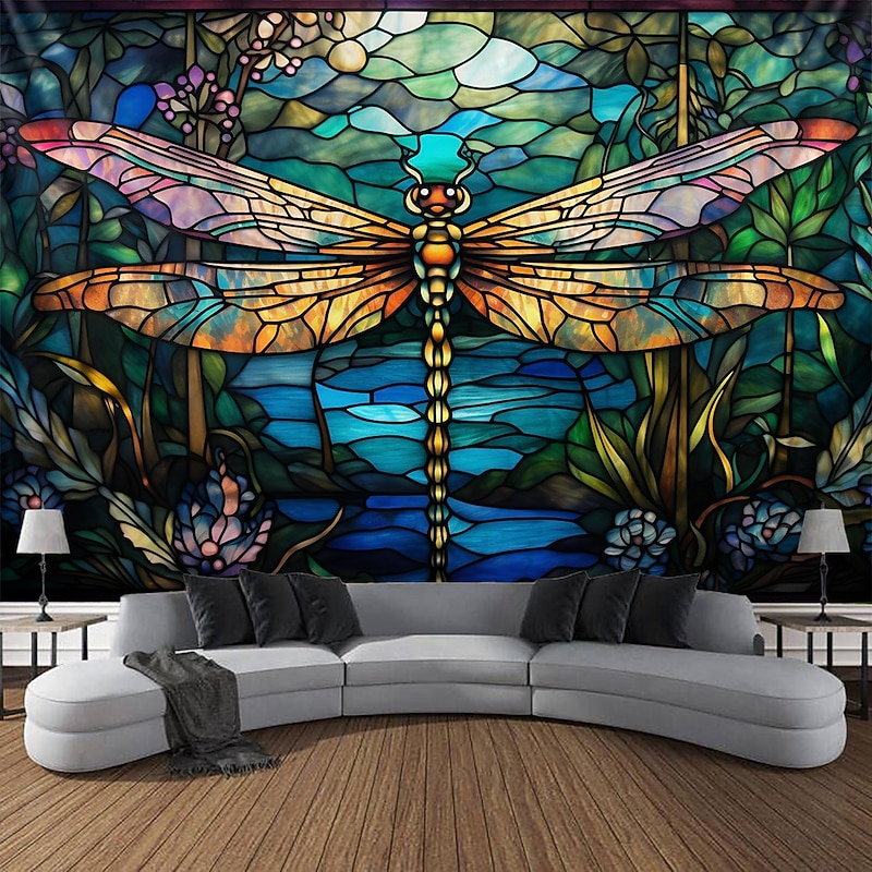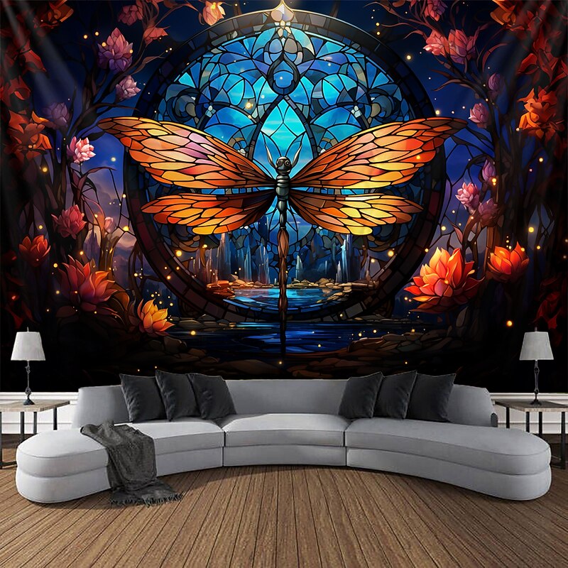 HOT ! Stained Glass Dragonfly Hanging Tapestry Wall Art Large Tapestry Mural Decor Photograph Backdrop Blanket Curtain Home Bedroom Living Room Decoration