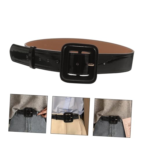 Vintage PU Wide Waist Belt for Women Adjustable Dress and Jeans Accessory Sleek Patent Leather Style Decorative Waistband for Business and Casual Wear Black 3
