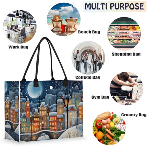 HOT ! Winter City Ice Tote Bag for Women Large Beach Bag Reusable Tote Bags for Work Travel Beach Shopping