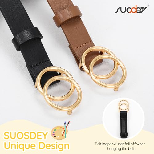 SUOSDEY 2 Pack Kids Leather Belts for Girls Solid Colors Skinny Belt for Teen Girls with Double O-Ring Buckles 2
