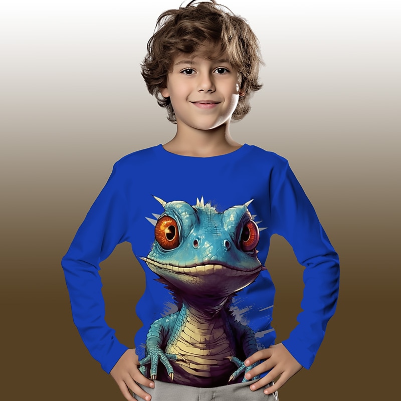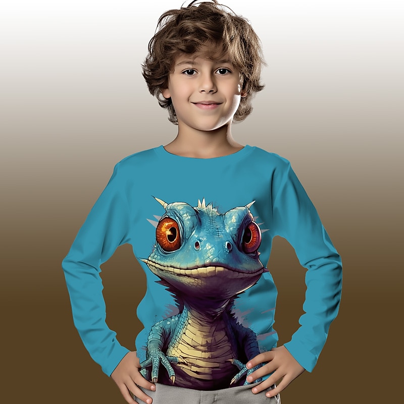 More information about Boys 3D Graphic Cartoon Crocodile T shirt Tee Long Sleeve 3D Print Summer Spring Fall Sports Fashion Streetwear Kids 3-12 Years Outdoor Casual Daily Regular Fit