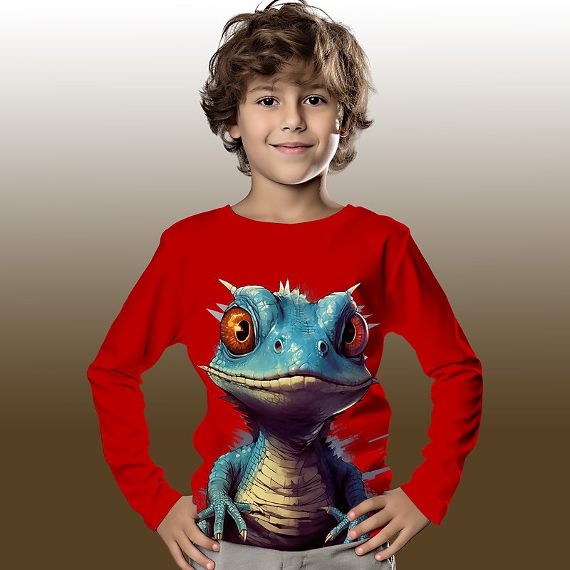 HOT ! Boys 3D Graphic Cartoon Crocodile T shirt Tee Long Sleeve 3D Print Summer Spring Fall Sports Fashion Streetwear Kids 3-12 Years Outdoor Casual Daily Regular Fit