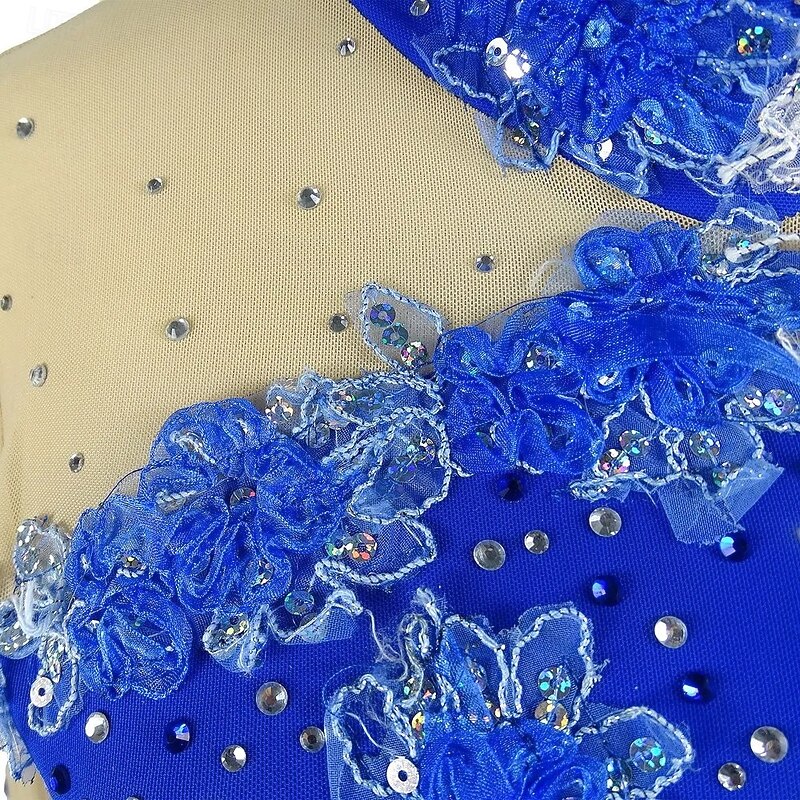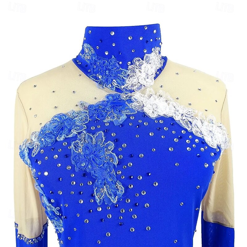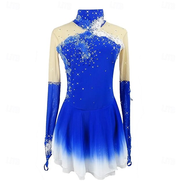 More information about Figure Skating Dress Women's Girls' Ice Skating Skirt Blue Flowers Gradient Skirts High Elasticity Training Competition Skating Wear Multi Color Crystal / Rhinestone Long Sleeve Ice / Kids