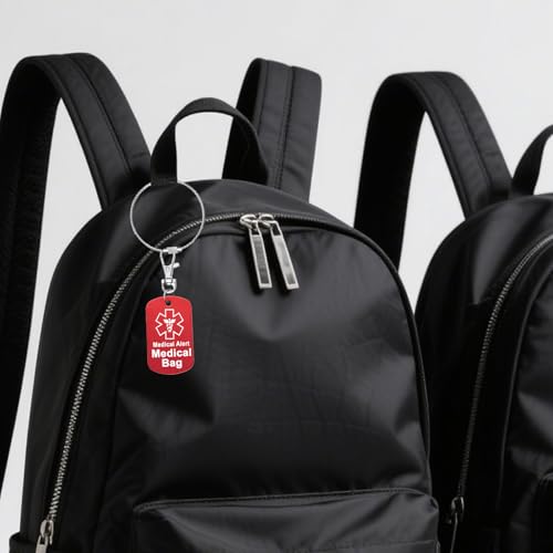 • 5 Style Medical Alert Luggage Tag: medical equipment inside, asthma inhaler inside, medicine inside, epipen inside, medical bag 5 style key tag for choosing.
