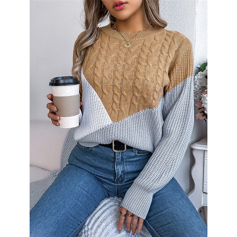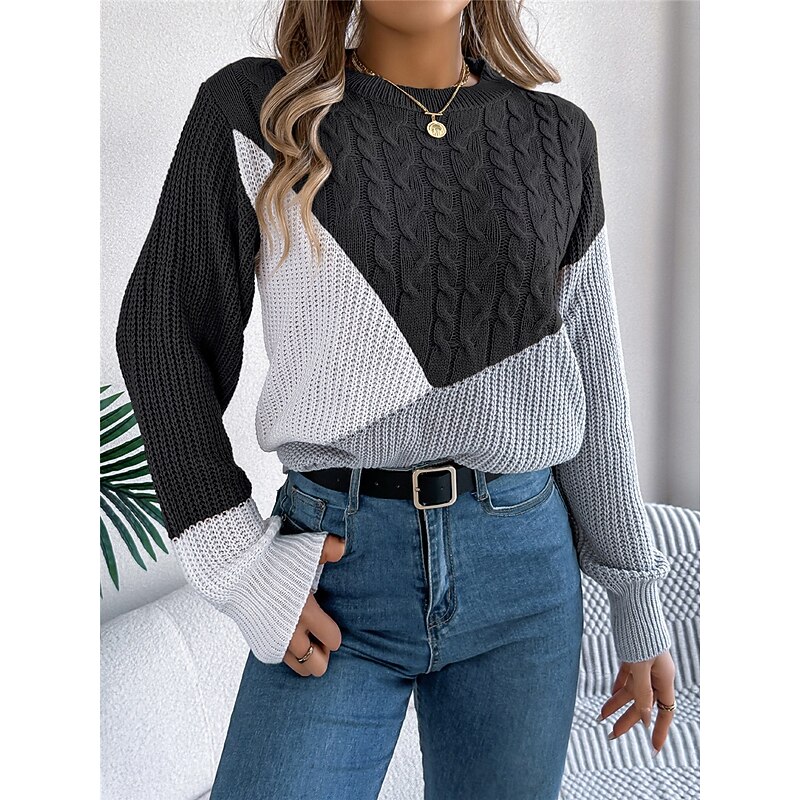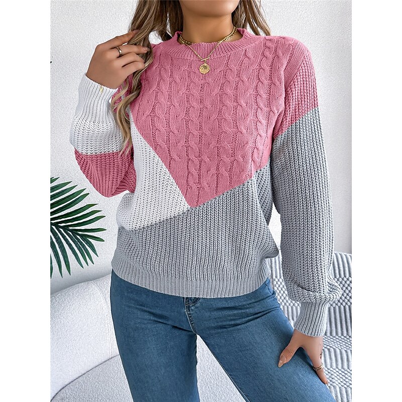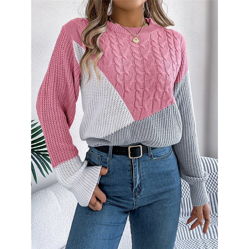 HOT ! Women's Sweater Pullover Sweater Jumper Casual Soft Color Block Ribbed Crew Neck Patchwork Knitted Long Sleeve Regular Tops Knit Outdoor Daily Weekend Black Pink Fall Winter