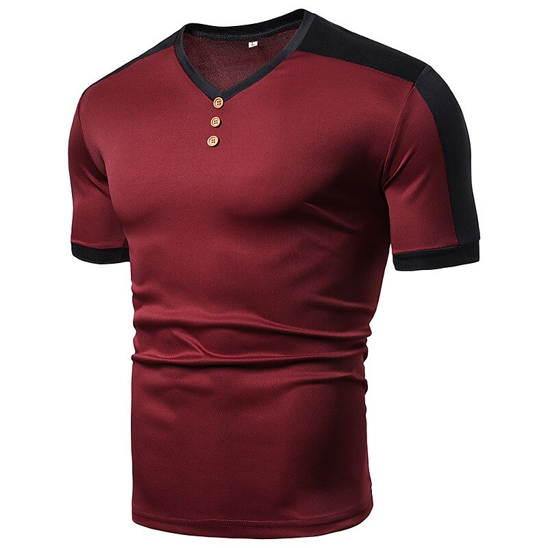 HOT ! Men's Button T Shirt T Shirt Tee Top Short Sleeves V Neck Summer Color Block Fashion Designer Basic Patchwork Buttons Vacation Street Going out Wine Black White Top Tee for Men