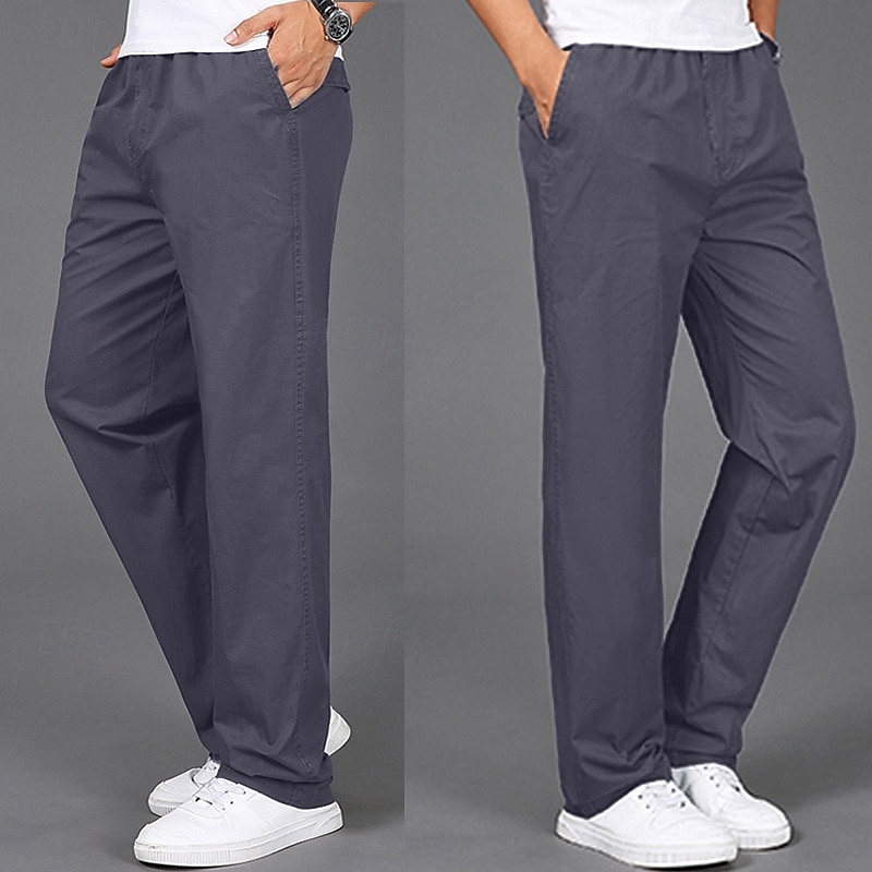Men's Cargo Pants Cargo Trousers Trousers Elastic Waist Straight Leg Plain Outdoor Sports Full Length Casual Daily Stylish Classic Style ArmyGreen Black 2
