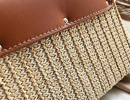Straw Crossbody Bag for Women Hand Woven Shoulder Bag Leather Top Handle Small Boho Purse Rattan Beach Handbags 6