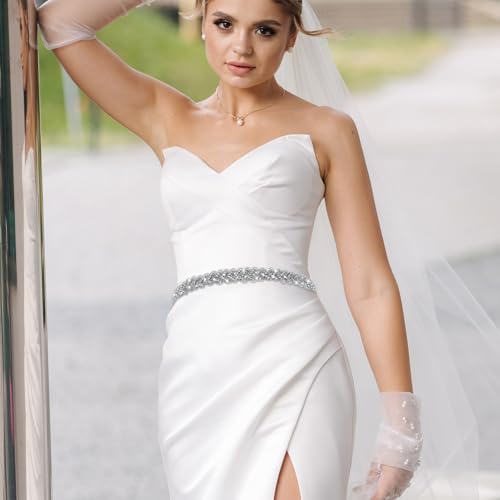 • 【Flexible and Self-adjustable Size】This wedding dress belt is 104.3 inches/265 cm long, diamond belts for women are long enough to fit waists of different sizes. You can adjust the tightness of the women dress belt according to your needs.