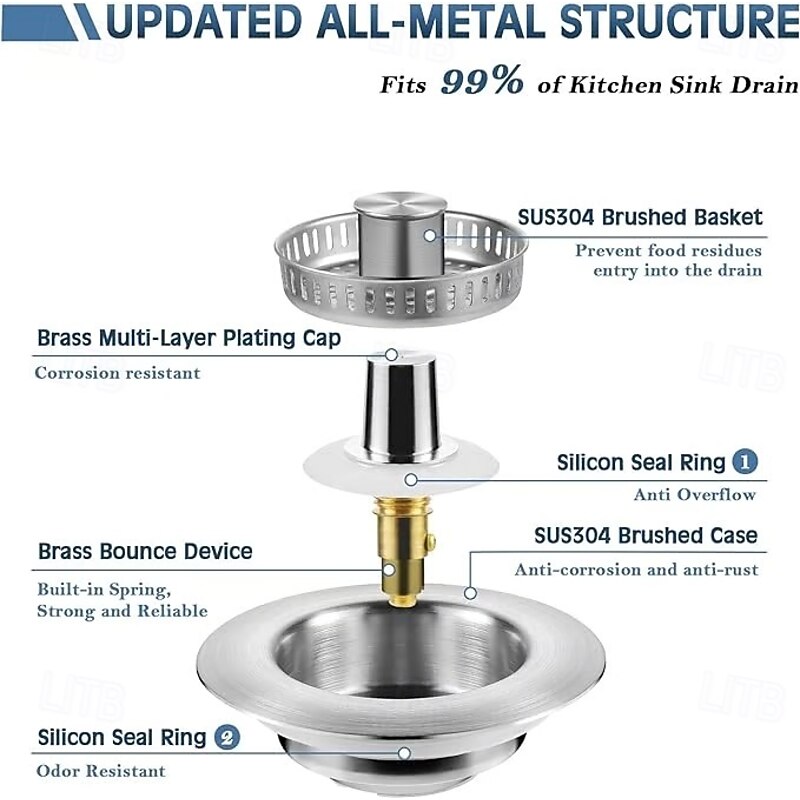 $15.99 - 3-in-1 Stainless Steel Kitchen Sink Drain Strainer Anti-Clogging Food Catcher Basket & Odor Filter with Spring-Loaded Pop-Up Stopper US Standard 3.5" Fit Rust-Resistant Kitchen Sink Plug 2025. Shop for cheap Cleaning Supplies online? Buy at lightinthebox.com on sale today!