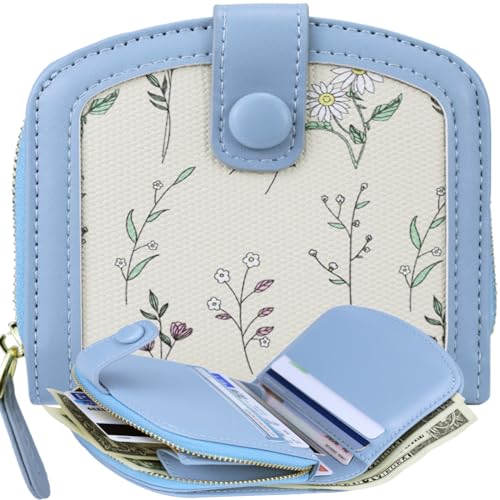 HOT ! Cute Wallet Women Blue Womens Wallet for Girls Flower Wallet for Women Small Wallets for Women Leather Credit Card Holder Kawaii Cash Wallet for Women Ladies and Girls