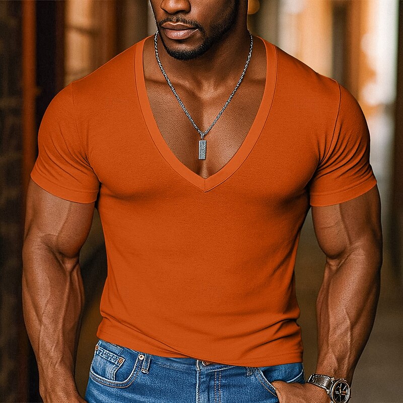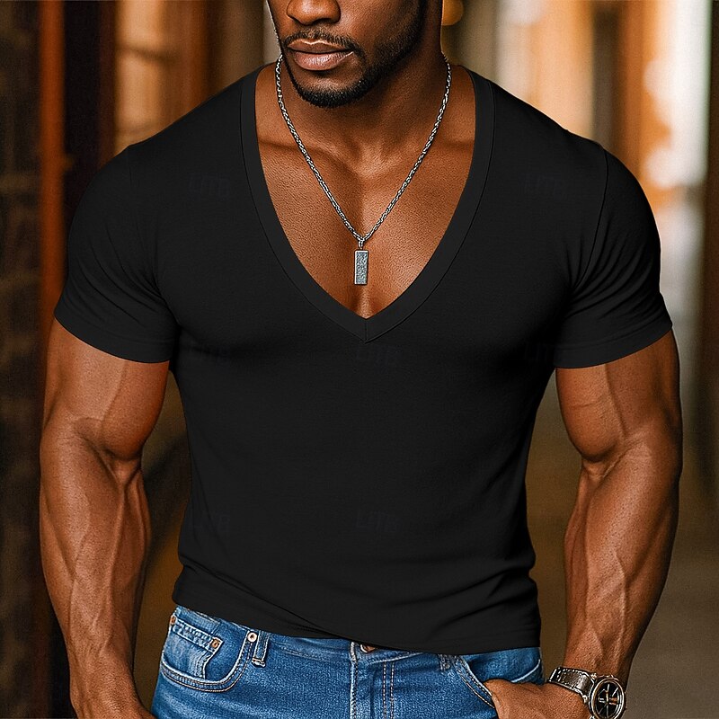 More information about Men's T Shirt Tee Top Short Sleeves V Neck Summer Solid Color Fashion Designer Basic V Neck Vacation Street Casual Light Blue Black Pink Top Tee for Men