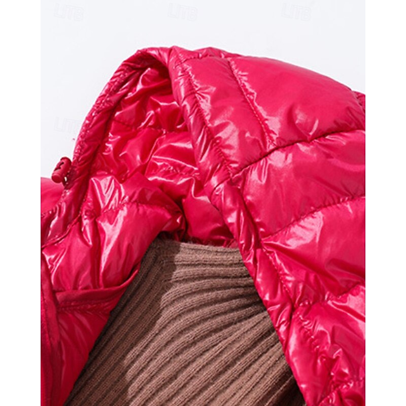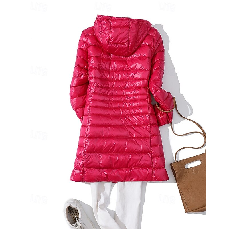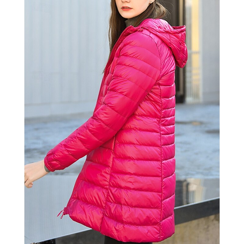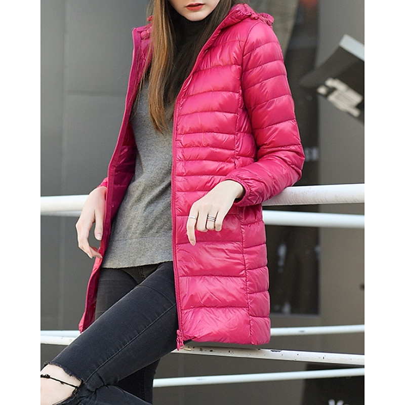 More information about Women's Down Jacket Coat Warm Comfortable Zipper Pocket Fashion Plain Holiday Going out Casual Daily Weekend Zipper Long Hooded Regular Fit Long Sleeve Outerwear Black Wine Red Fall Winter