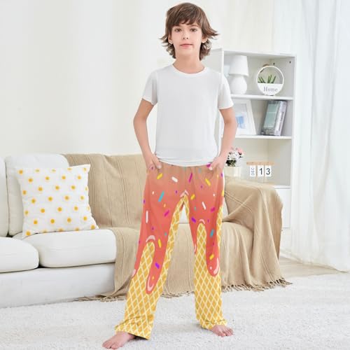Boy's Pants Pink Color Ice Cream Jogger Pants Elastic Waist Long Bottoms Trousers with Pockets 6-14 Years 6
