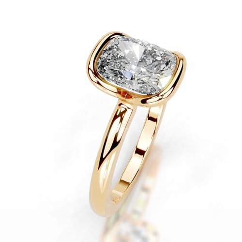 2.5 CT Elongated Cushion Cut Moissanite Engagement Ring for Women Bezel Solitaire Engagement Handmade Ring, Promise Gifts for Her, 10K/14K/18K Solid Gold Anniversary Propose Ring Gifts