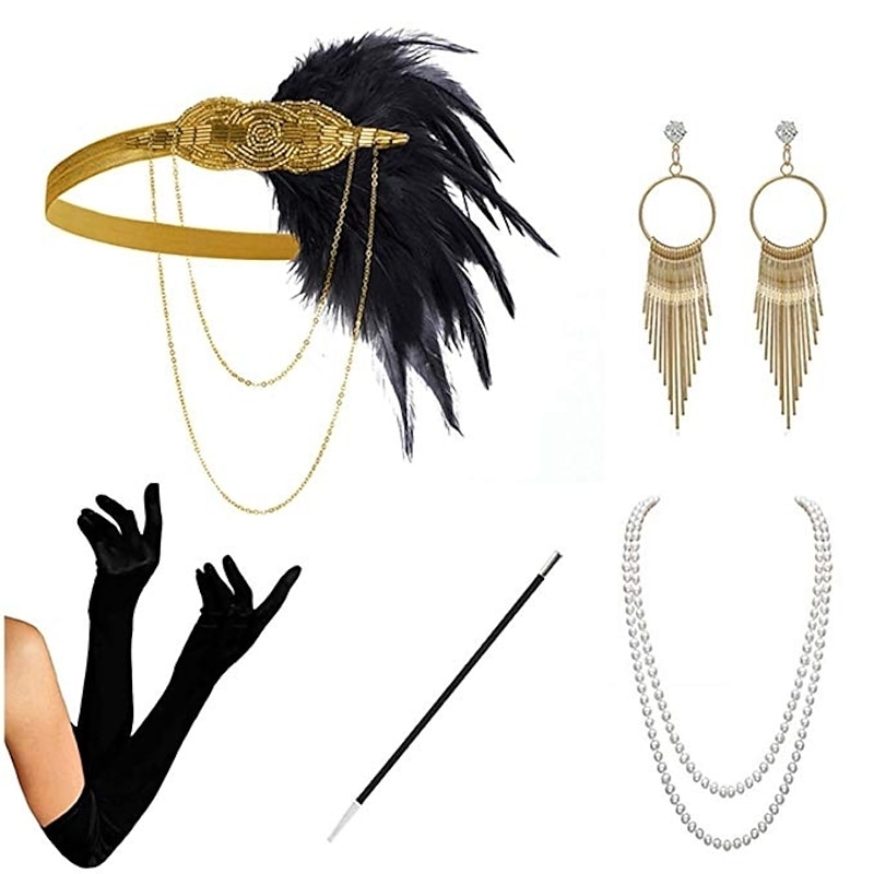 Highlights Headband: With feather and jewel detail, perfect for 20's night, one size fits most sizes,attached to a shinning black elastic band that allows for easy adjustment. Satin Fingerless Gloves:This graceful vintage inspired pair of fashionably sheeny and soft satin like opera gloves,stretch fabric material feels comfortable for a night out dancing. One Pearl Necklace:Timeless classic style,knotted in between each pearl,it's weighty and not cheap plastic,you can wear in any occasion,also in daily life. One Black Cigarette Holder:Lightweight and cute,will make a good outfit for your 20s party. Package contents are all shown in the picutre,fit for girls and women.Great Accessories Set for Prom, event, Christmas and for 1920s party, great gatsby party, art deco party and flapper party.