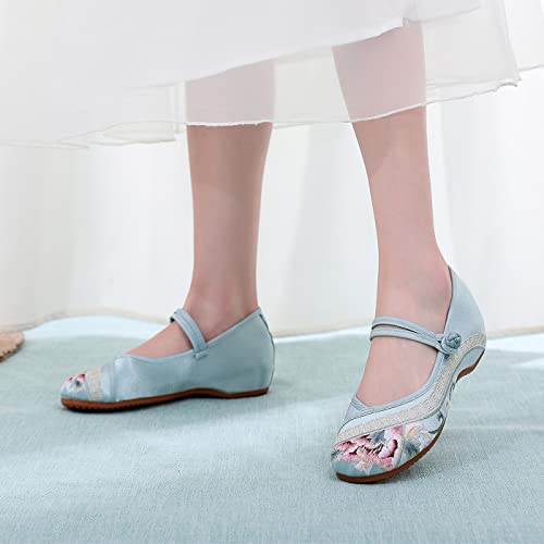 Womens Handmade Floral Embroidered Canvas Shoes - Casual Round Toe Mary Jane Ballet Yoga Flats Slip On Shoes 6