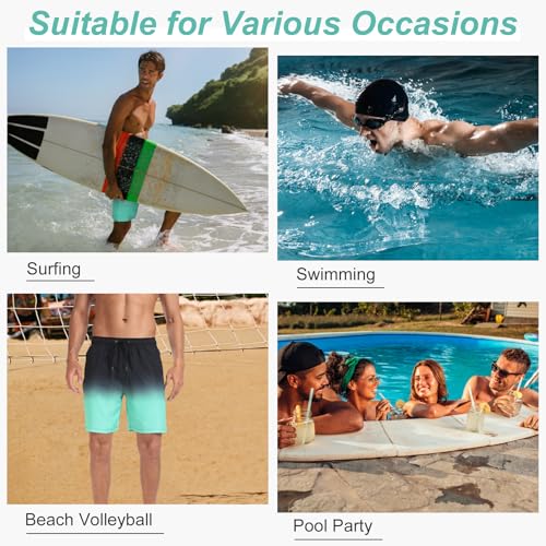 • Wide Application: Mens bathing suit suits for various occasions; Whether you're diving into waves, playing beach volleyball, or lounging by the pool, these mens board shorts move with you; Express your personality while enjoying the sun and surf