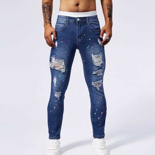 • Match:The blue distressed destroyed slim fit denim pants men can paired with t-shirt,blazer,tanks, shirts,sneakers,sweater