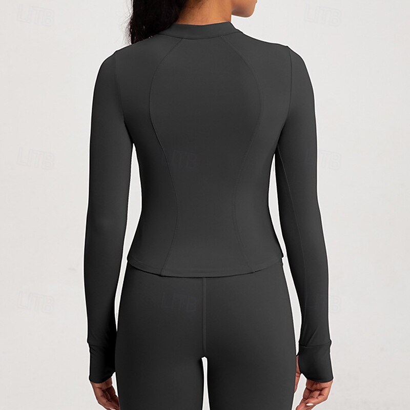 Women's Workout Shirt Breathable Zipper Long Sleeve Sports Solid Color Top For Pilates Running Yoga Activewear 1