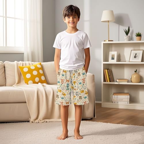ALAZA Cartoon Elephant Bear Whale Tiger Cat Pajama Shorts Sleep Shorts Pant Lounge Pajama Bottoms Elastic Waist with Pockets 1