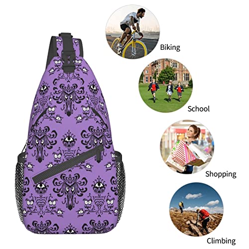 GTEVUTS Purple Haunt Mansion Crossbody Bags Sling Bag for for Women Men, Cute Fashion Chest Bag Casual Small Shoulder Bags Travel Hiking Cycling Gym Sport Lightweight Daypack Adult Backpack 4