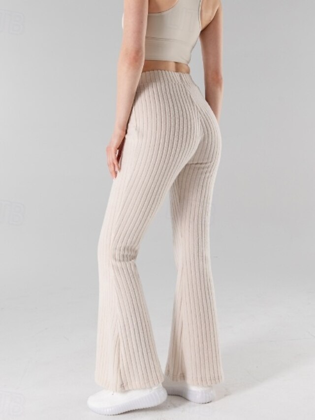 Women's EU / US Size Chinos Baggy Pants Cozy Leggings Lightweight Full Length High Rise Stripe Quick Dry Lightweight Soft Micro-elastic Daily Wear rice white Black 4# Spring, Fall, Winter, Summer 2
