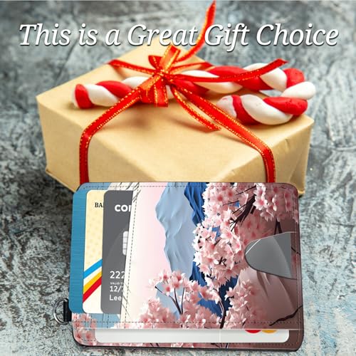 Slim Minimalist Wallet for Men Women Small Credit Card Holder Wallet Front Pocket RFID Blocking Wallets Travel Card Case with ID Window Card Organizer & Wristlet,Japanese Pink Cherry Blossom 5