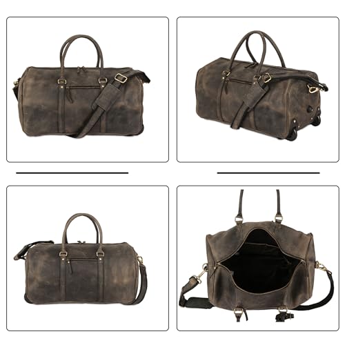 Leather Rolling Travel Duffle Bag for Men Women 21 inch with wheels Sports Overnight Weekend Duffel Gym Cabin Holdall with wheels for easy carry 7