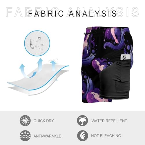 Mermaid Men's Swim Trunks Board Shorts Quick Dry Bathing Suit Swimwear with Compression Liner 2